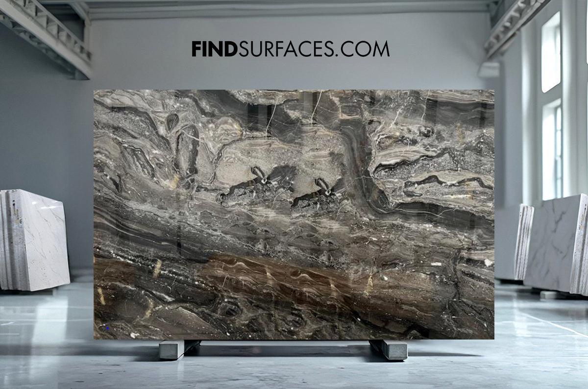 The Arabescato Orobico Marble Collection showcases one of Italy’s most visually striking stones, quarried in the Lombardy region. Known for its dramatic veining and bold colour palette—ranging from grey and silver to rose, brown, and taupe—this marble is a true showstopper. Every slab of Arabescato Orobico tells a unique geological story, making it a favourite for luxury interior design.
