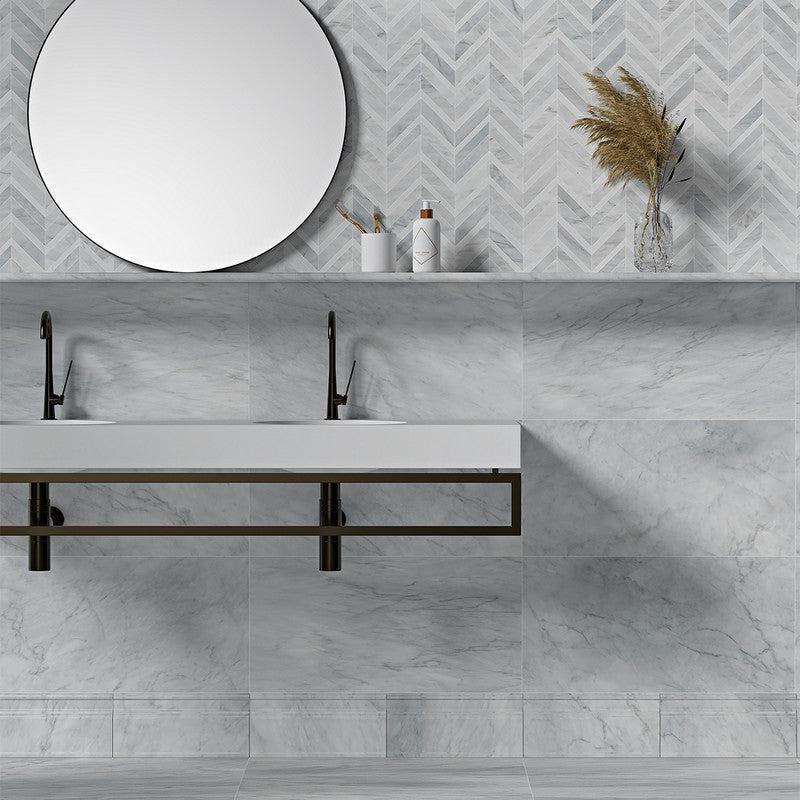 ![Avenza Marble Chevron Tiles - Honed]()