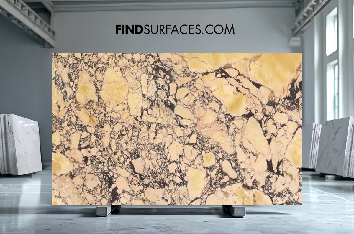 Arabescato Viola Gold Marble Striking Visual Pattern