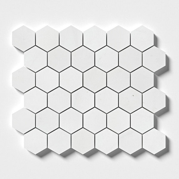 Aspen White Marble 50 mm Hexagon Mosaic - Honed