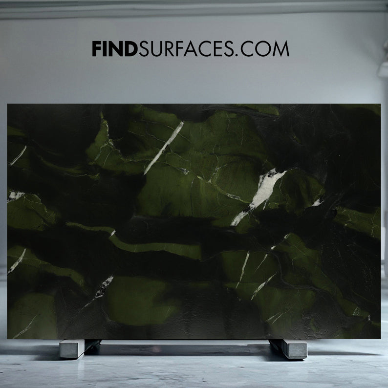 A statement material for contemporary and classic interiors alike, each slab presents gentle motion and distinctive light reflections. Ideal for high-end interiors, statement floors, and countertops. Representing the pinnacle of sustainable natural surface production.