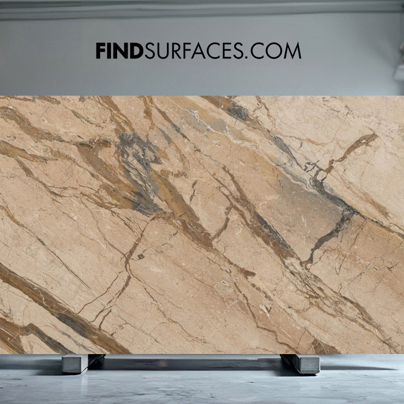 Breccia Etna Marble renowned for its graceful veining that adds dimension without overwhelming the space. Each slab carries its own unique identity, offering designers flexibility in shaping distinctive, high-end spaces.