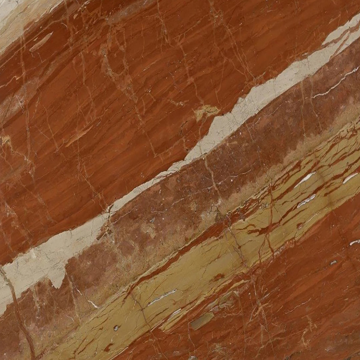 Breccia Fantastique Marble features vivid swirls of amber, brown, and cream, offering visual drama. Favoured for feature walls, flooring, and luxury bathrooms with artistic depth.