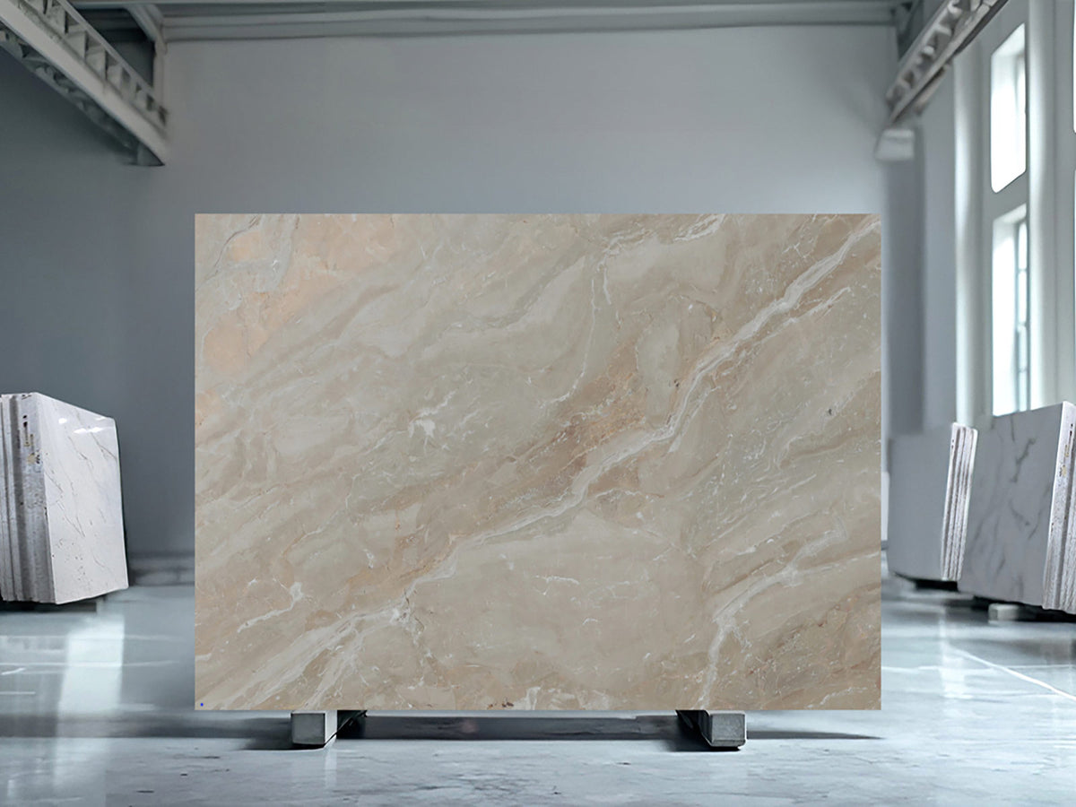 Breccia Oniciata Marble features soft beige tones with flowing veining, making it suitable for bathrooms, feature walls, and flooring.