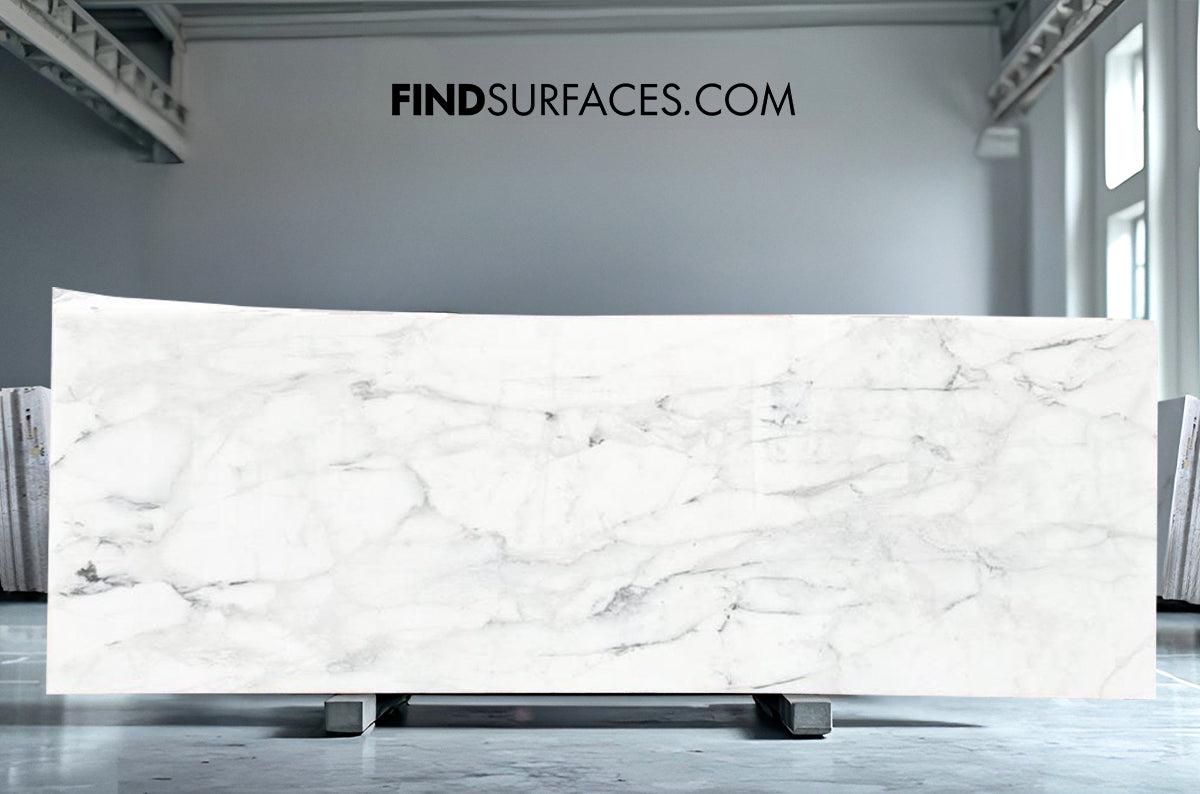 Calacatta Caldia Marble – Refined Grey Veins and Light Cream Finish