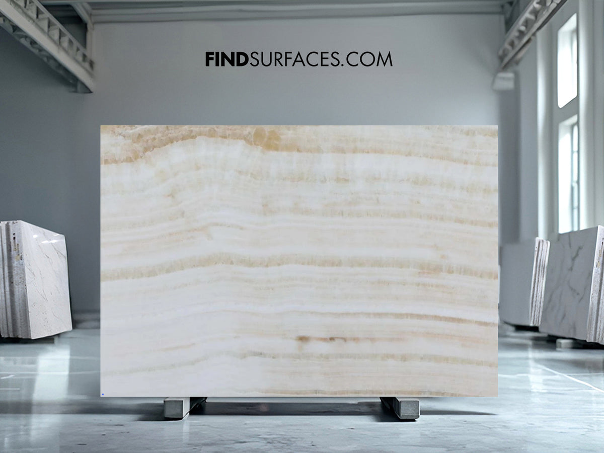 With its gentle golden undertones, Ivory Onyx creates soothing luxury. Designers use it in spa inspired bathrooms and feature lighting elements.