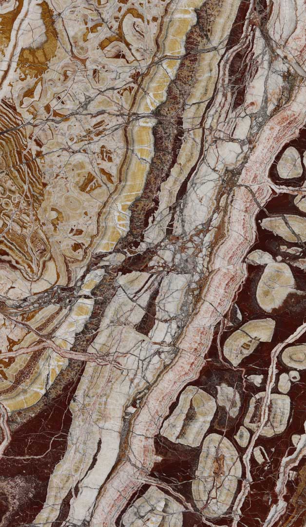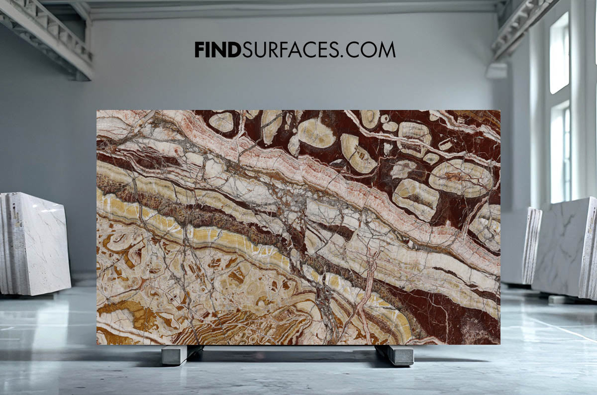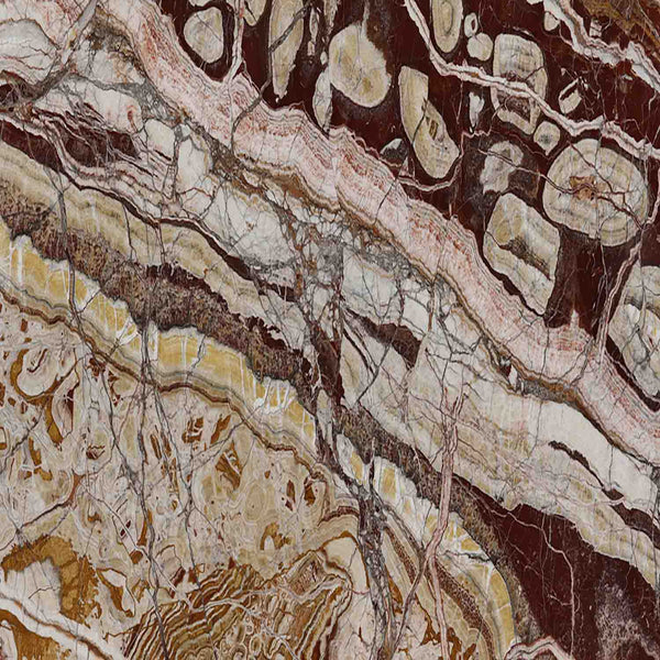 Celebrated for its architectural elegance, Red Onyx offers timeless elegance suited to contemporary design. It is particularly suited to kitchen worktops and waterfall islands. When polished to emphasise colour and natural veining, the material reveals rich character and refined visual depth.