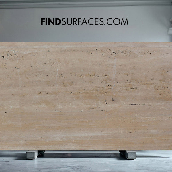 Roman Classico Travertine Slabs is available in a range of finishes including Honed, Polished and other finishes depending on the material . We offer fabrication services including cut to size slabs, tiles and products including vanities, bath surrounds, window sills, skirting, architrave and kitchen worktops and splashbacks. For more information and a quotation based on your design requirements please enquire as our team are available to support you with your project.