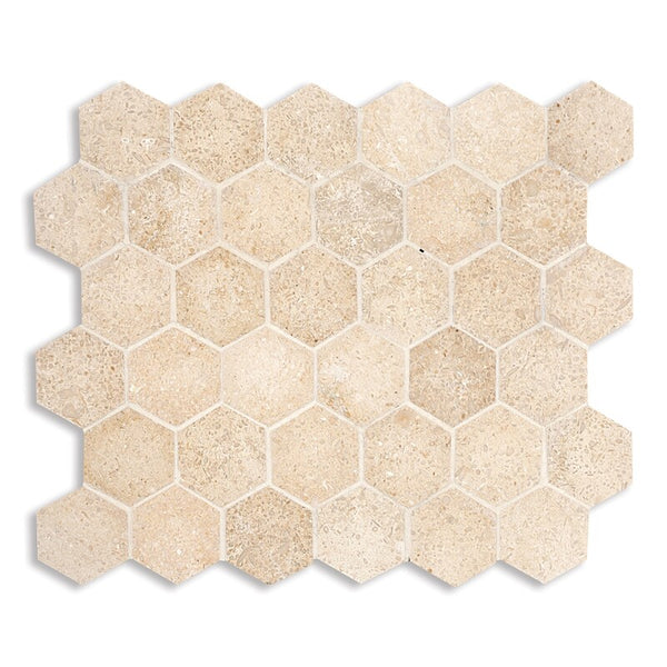 Seashell Limestone 50 mm Hexagon Mosaic - Honed
