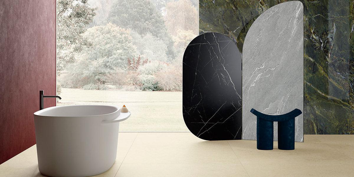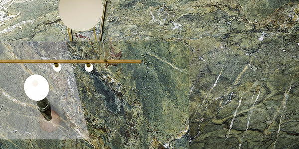Verde Amazon Marble Porcelain blends lush green tones with intricate veining, offering a striking natural aesthetic for bathroom vanities, feature walls, and high-end kitchen countertops.