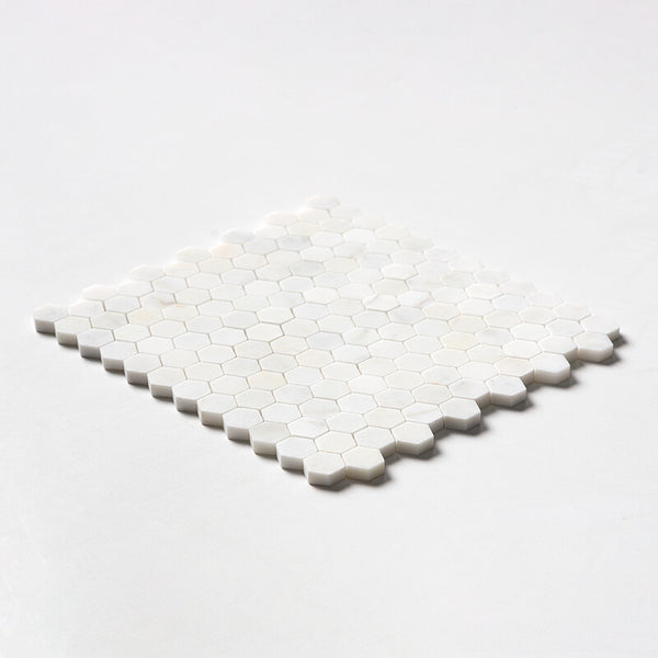 White Pearl Marble 25 mm Hexagon Mosaic – Honed